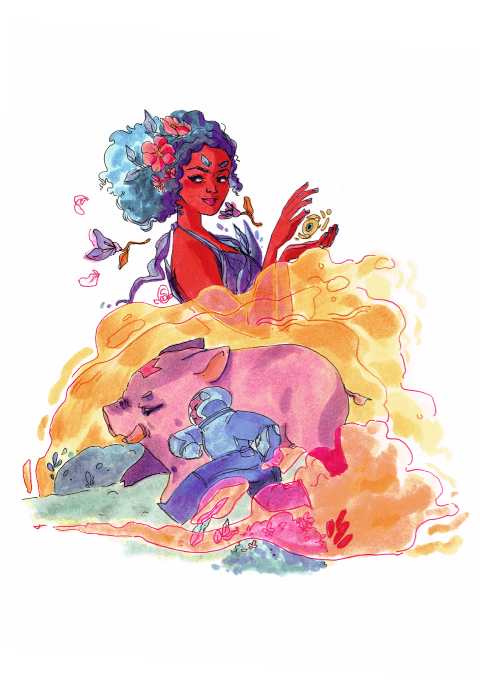 Printed on A5 matte finish card stock, these are a selection of prints from the Be My Familiar art zine. Each one of these pieces inspired by some whimsical longing for being in places far far away with dream companions.